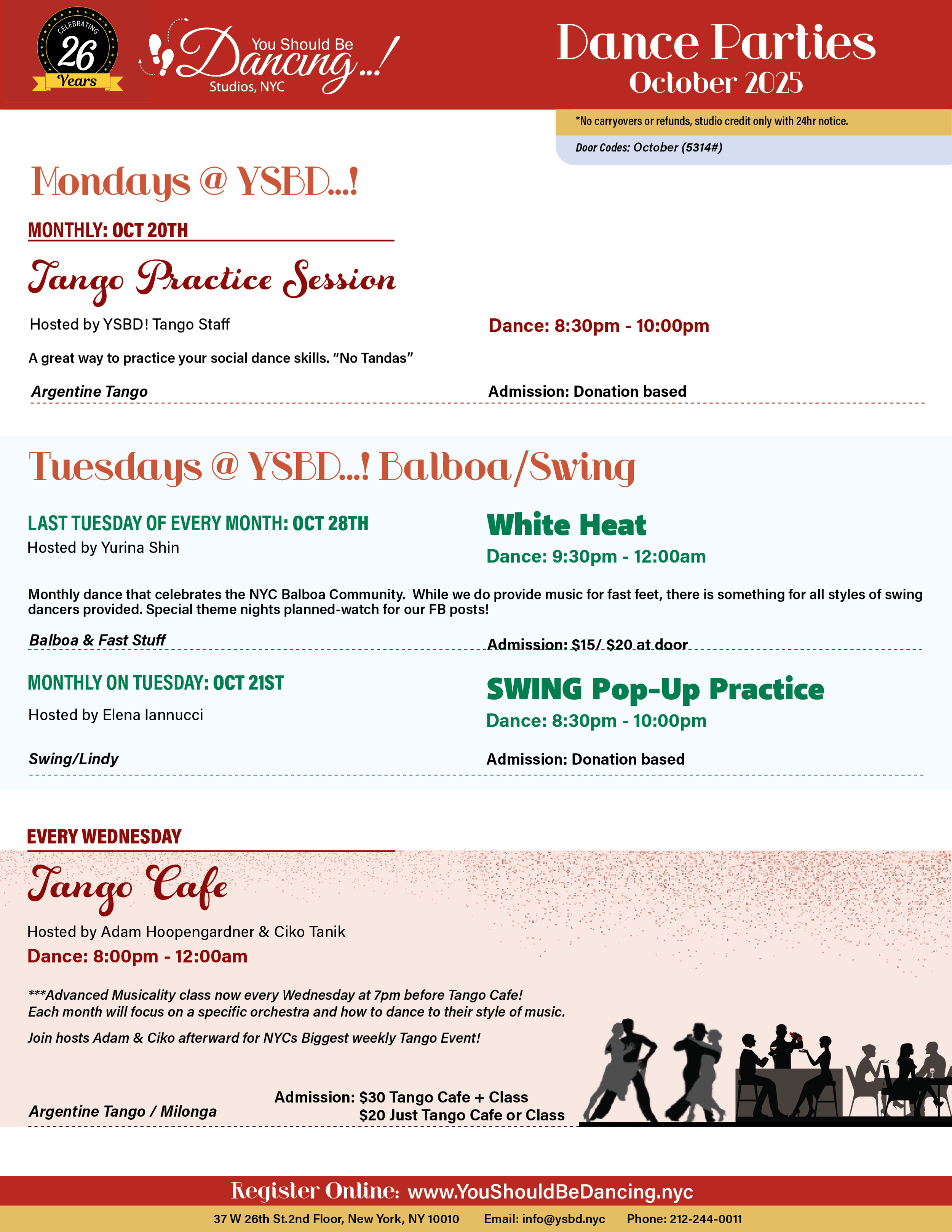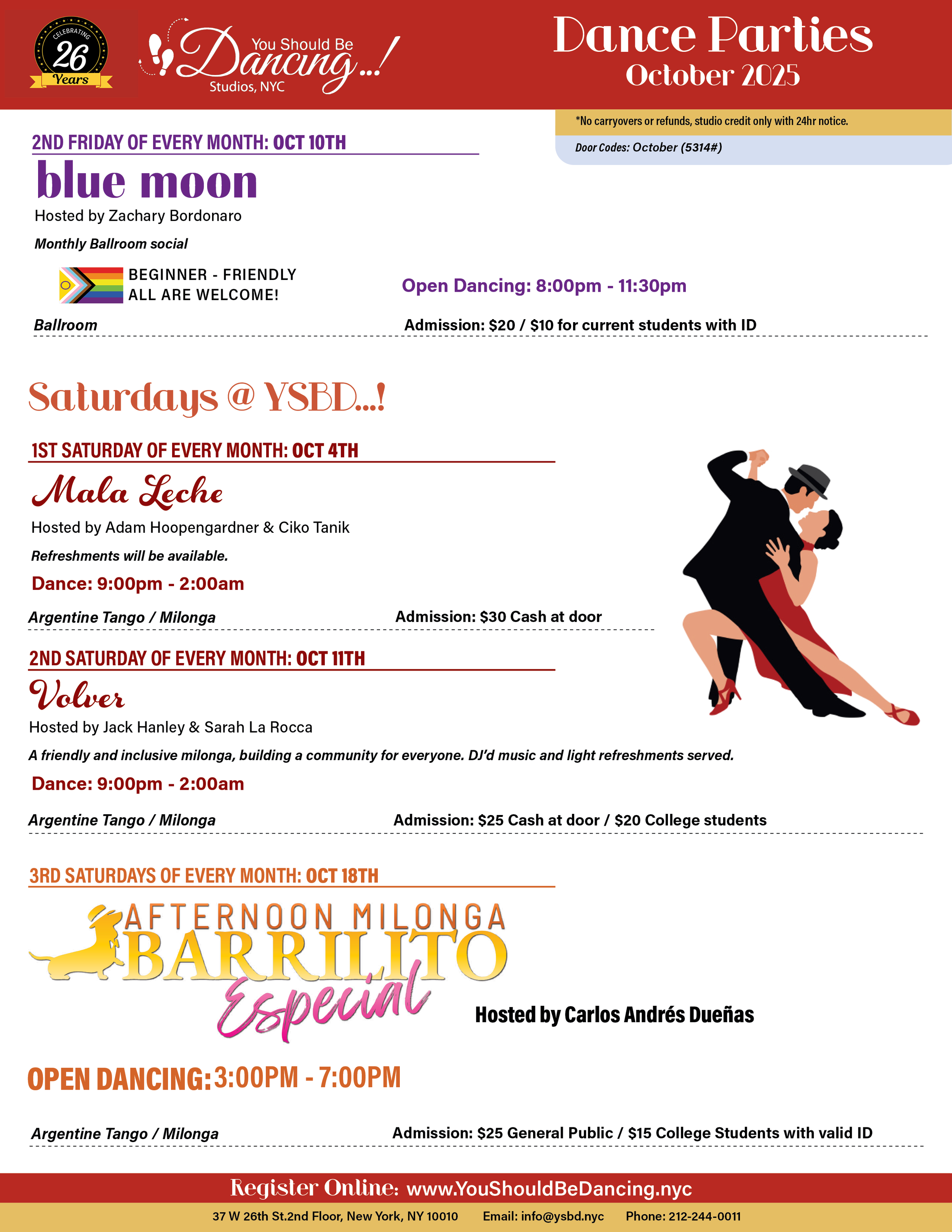 We are very happy to have this long standing party joining us at YSBD! For over 10 years, Irene and her team have hosted this event, which has become a staple dance in the Ballroom community. This event supports the creative outlet for casual dancers and performers alike, and has helped create many wonderful memories for its patrons.
